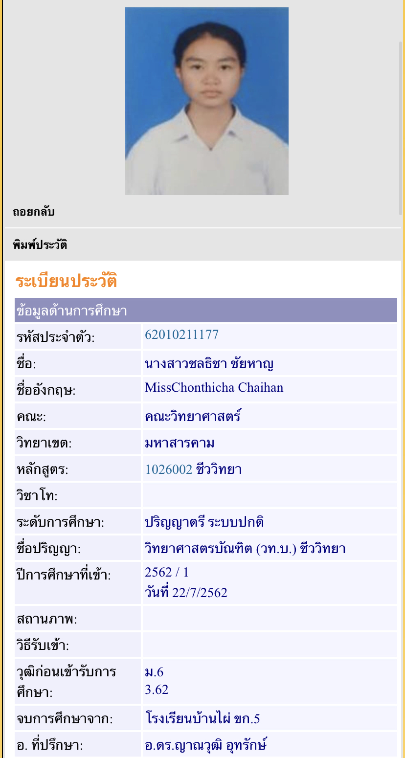 ใช้ในการสอบนำเสนอวิจัยโครงงานทางชีววิทยา 1 Senior Project in Biology 1 0203493 ของนิสิตปริญญาตรี |