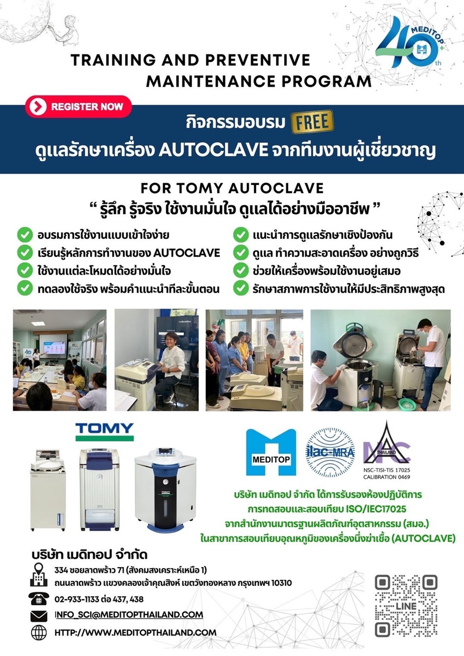 อบรมการใช้งานเบื้องต้น และการบำรุงรักษาเครื่อง Autoclave ยี่ห้อ TOMY