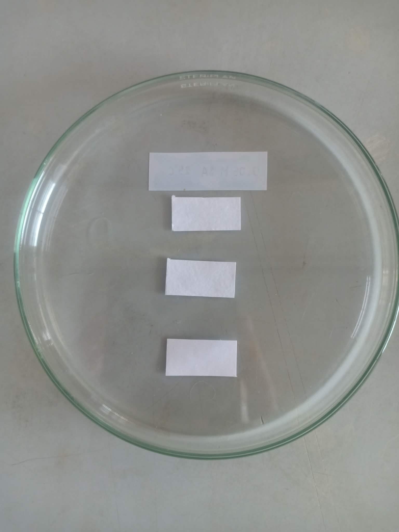 ตัวอย่างเป็นแผ่นขาว มีผิวเรียบ |